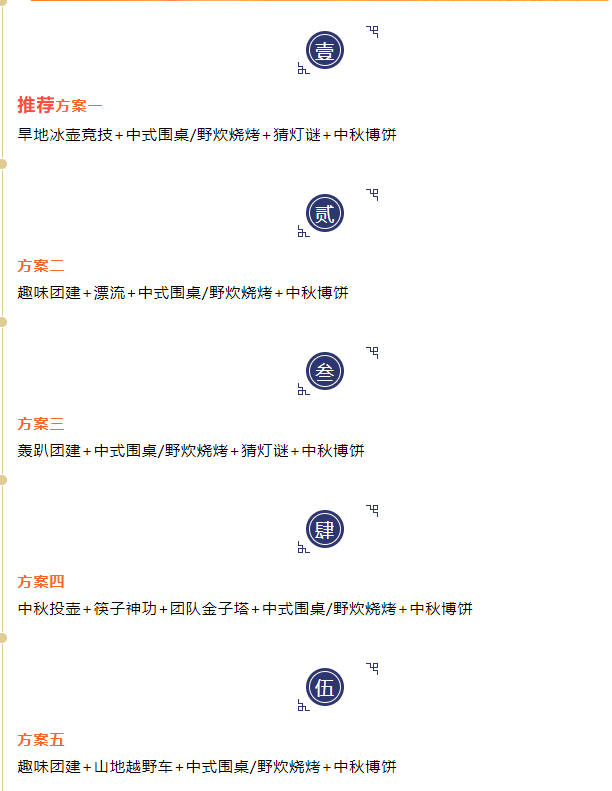一年一度的中秋佳节即将来临﹐为丰富员工的文娱生活,促进员工之间的沟通交流,团队凝聚力,增强员工归属感,推动企业文化建设,让公司大家度过一个美好又难忘的中秋节,特推出多种团建方案。