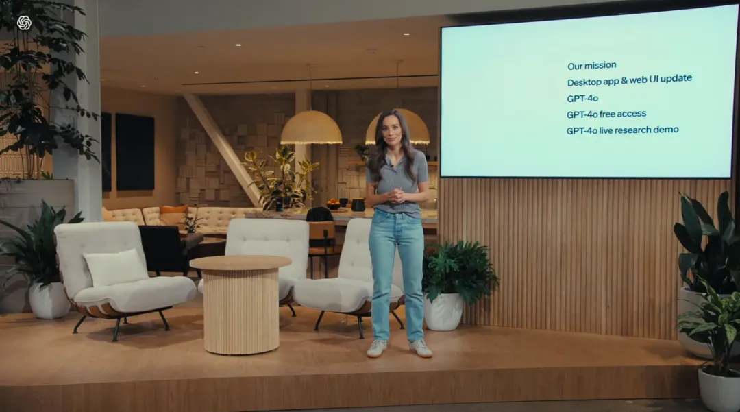 发布会的第一个“她”——OpenAI 首席技术官(CTO)Muri Murati 亮相直播间,迅速带来了关于 GPT-4o 以及 ChatGPT 最新特性的一系列介绍。