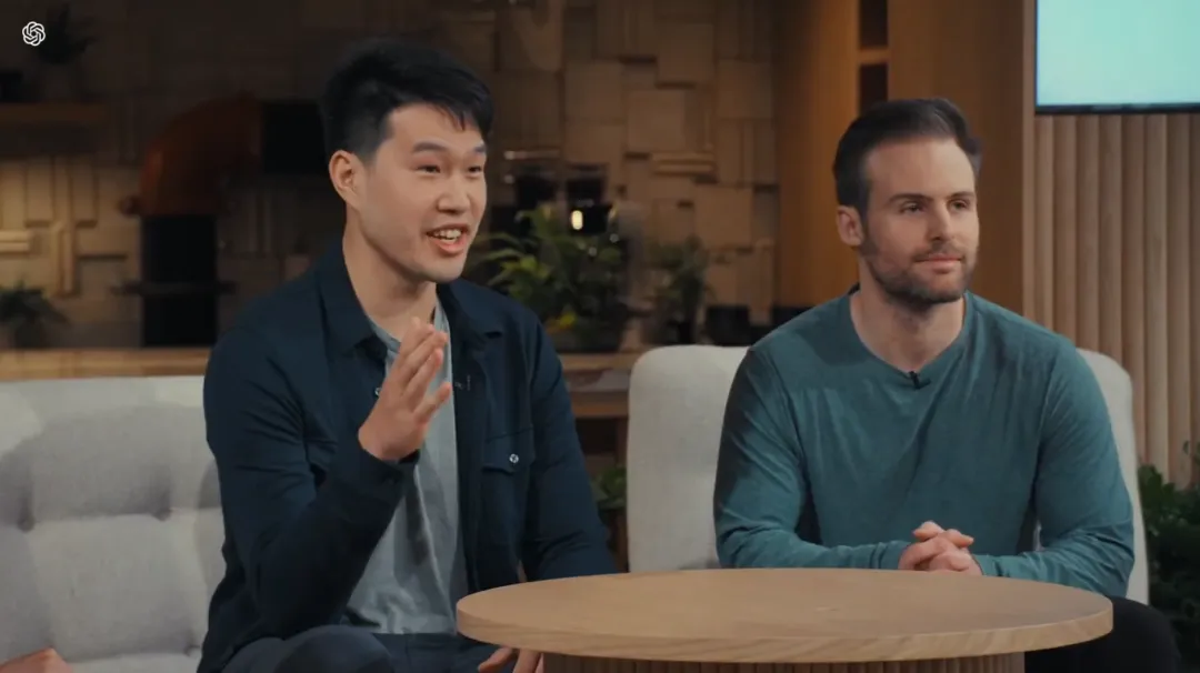 Murati 邀请了两位 OpenAI 的研究主管上台,他们是 Mark Chen(图左,推特:@markchen90)和 Barrett Zoph(图右推特:@barret_zoph)。