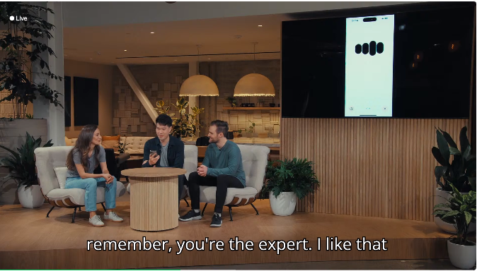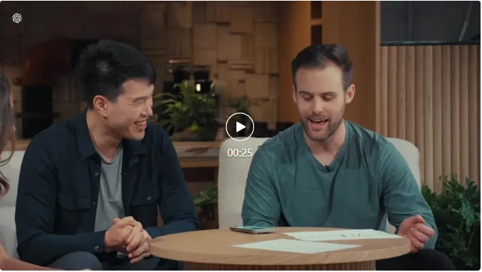 本次展示聚焦于 ChatGPT 应用的实时对话语音功能,通过现场演示,展示了用户与 AI 之间流畅无阻的交互体验。Mark Chen 通过手机上的应用程序,激活了 GPT-4o 的音频功能,与 AI 进行了实时对话,并体验了其即时响应与情绪感知能力。