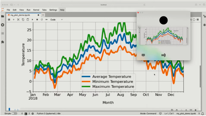 Barret 分享的代码旨在处理特定地点及时间段的天气数据,通过移动平均法平滑温度数据,并可视化全年气温变化。在代码执行后,通过启用 ChatGPT 的视觉功能,双方共享了图表内容。