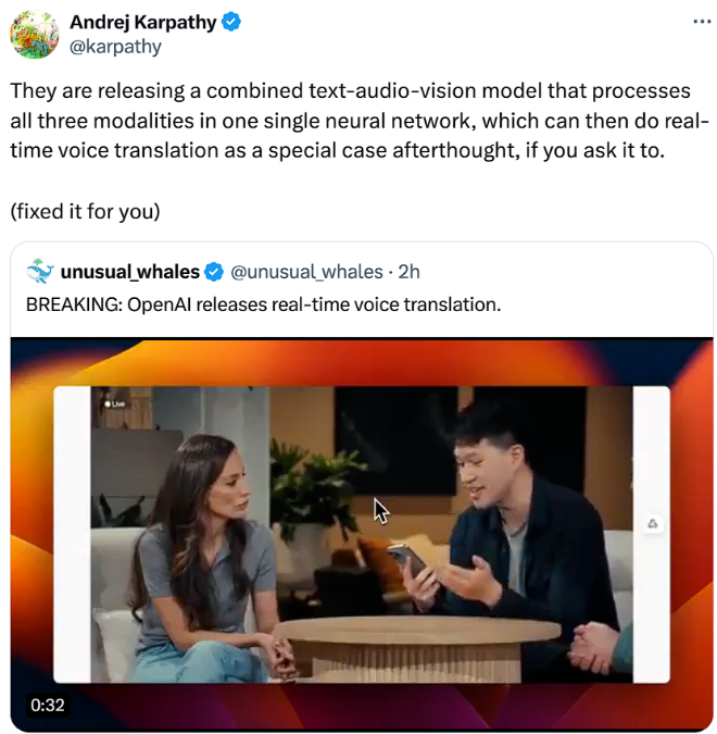 AI 春晚的影响力不可小觑,整个圈内都陷入了激动的状态,只可怜谷歌明天的 I/O 大会了。在众多反应里,几位 AI 圈的名人也先后出来展示了自己的看法: