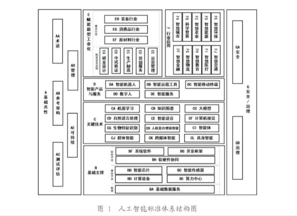 基础共性标准主要包括人工智能术语、参考架构、测试评估、管理、可持续等标准。